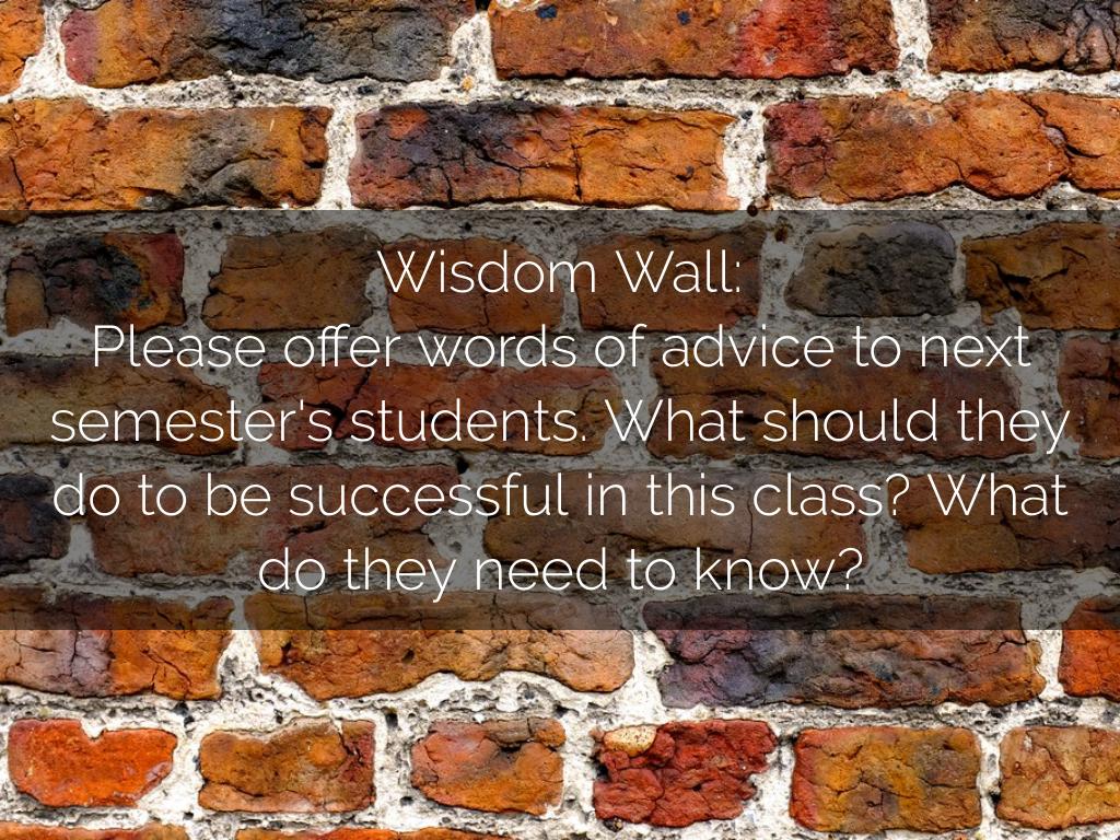 Please offer words of advice to next semester's students. What should they do to be successful in this class? What do they need to know?