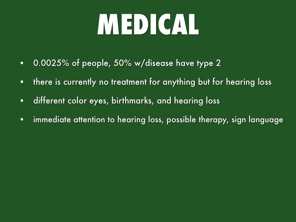different color eyes, birthmarks, and hearing loss