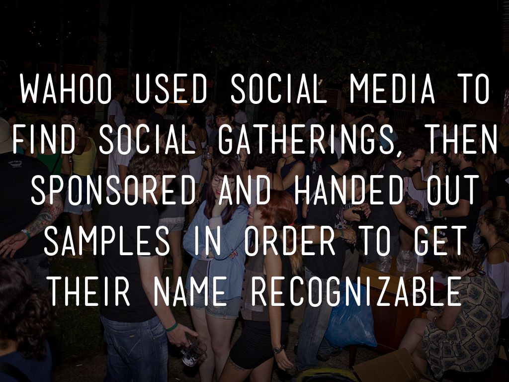 wahoo used social media to find social gatherings, then sponsored and handed out samples in order to get their name recognizable