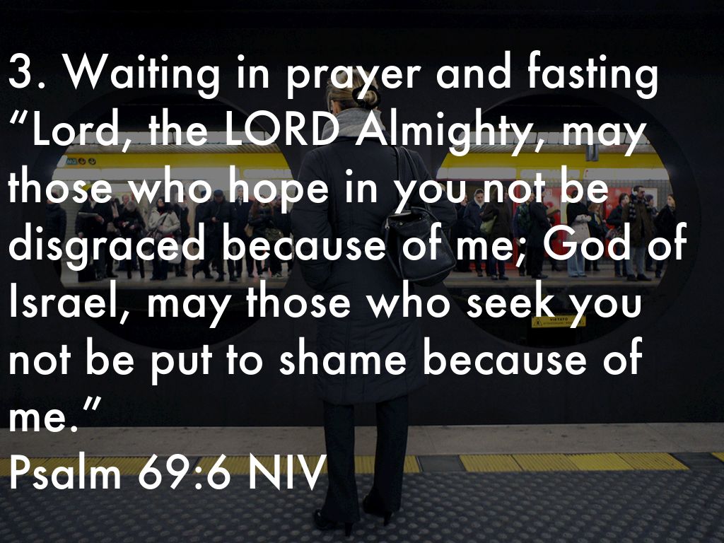3. Waiting in prayer and fasting “Lord, the LORD Almighty, may those who hope in you not be disgraced because of me; God of Israel, may those who seek you not be put to shame because of me.” Psalm 69:6 NIV