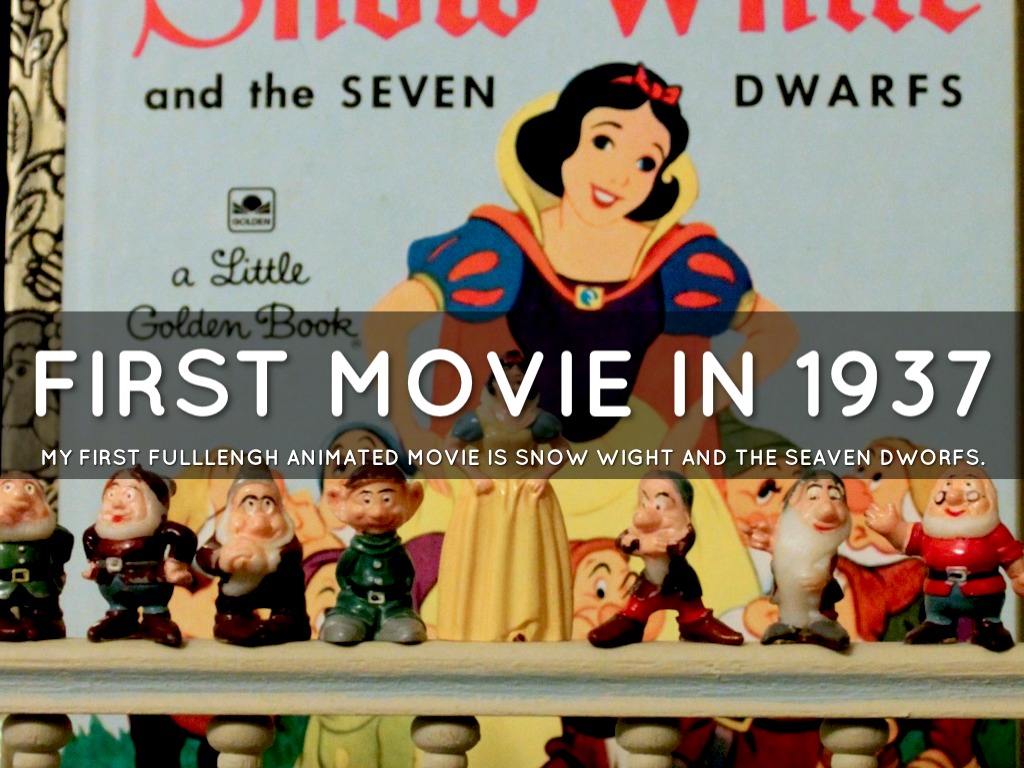 MY FIRST FULLLENGH ANIMATED MOVIE IS SNOW WIGHT AND THE SEAVEN DWORFS.