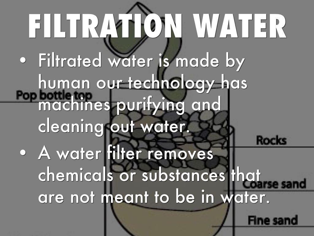 Filtrated water is made by human our technology has machines purifying and cleaning out water.