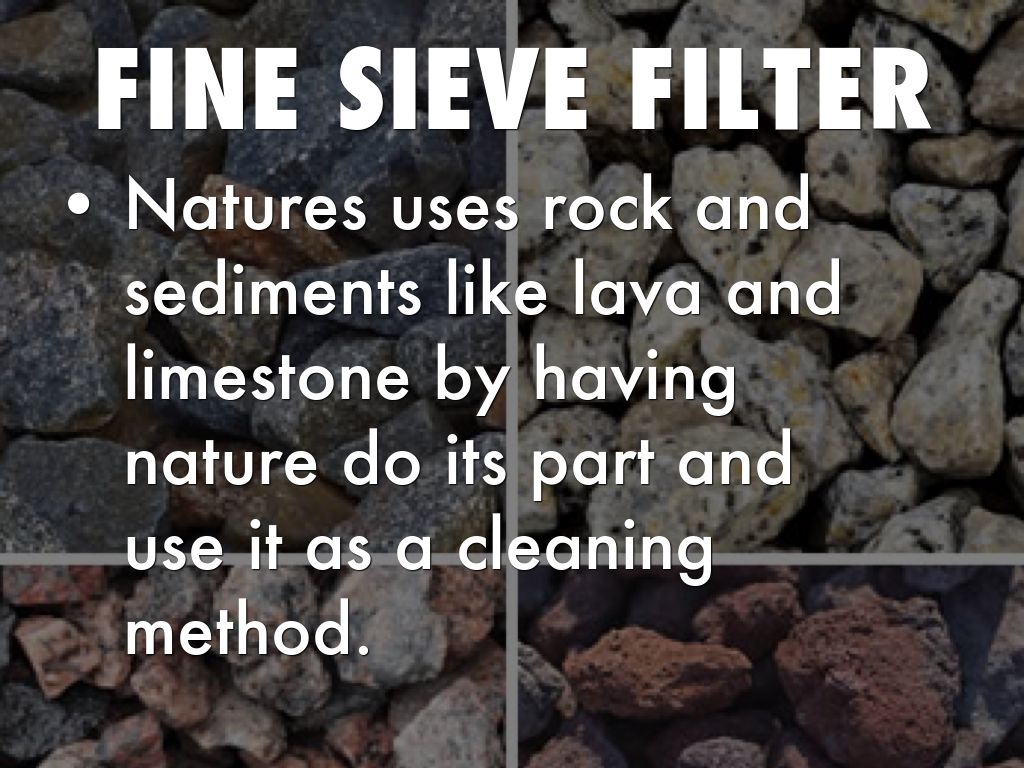 Natures uses rock and sediments like lava and limestone by having nature do its part and use it as a cleaning method.