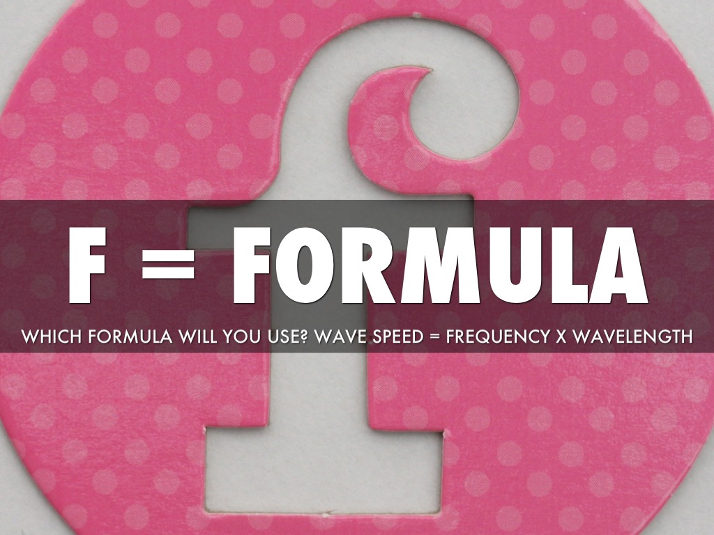 WHICH FORMULA WILL YOU USE? WAVE SPEED = FREQUENCY X WAVELENGTH