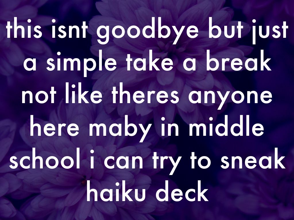 this isnt goodbye but just a simple take a break not like theres anyone here maby in middle school i can try to sneak haiku deck