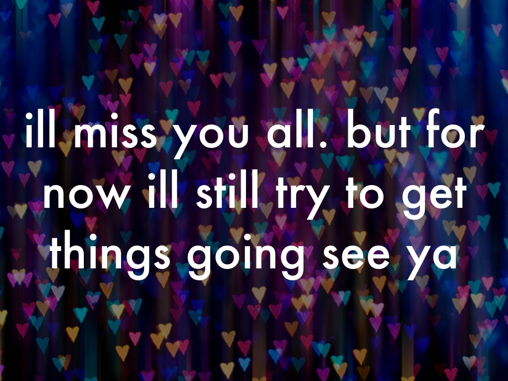 ill miss you all. but for now ill still try to get things going see ya