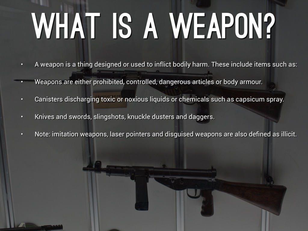 Note: imitation weapons, laser pointers and disguised weapons are also defined as illicit.