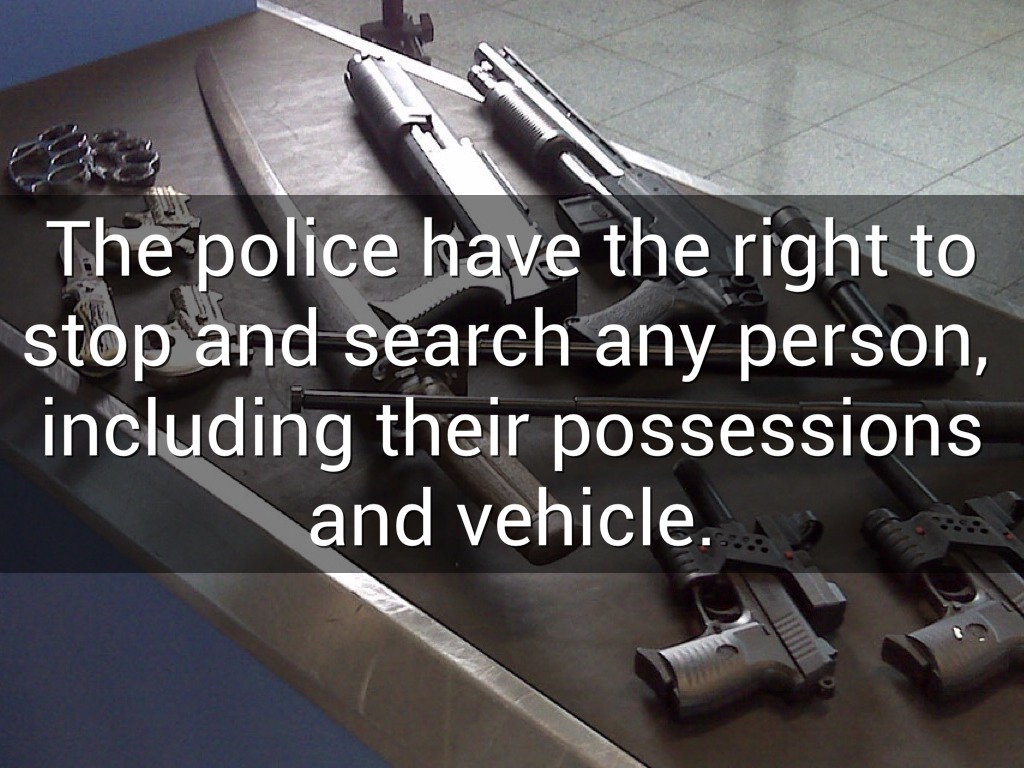The police have the right to stop and search any person, including their possessions and vehicle.