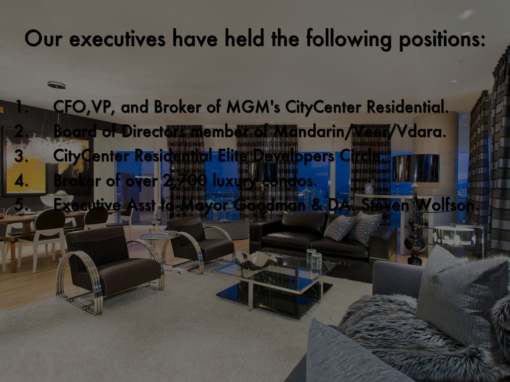 - CFO,VP, and Broker of MGM's CityCenter Residential.