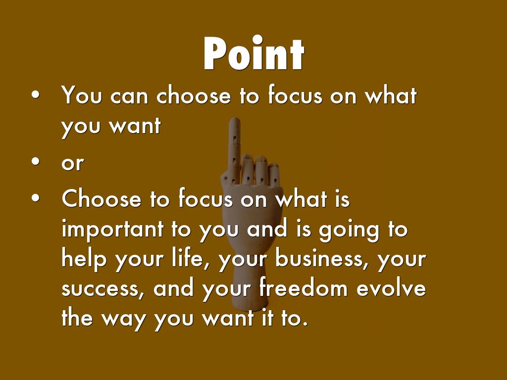 Choose to focus on what is important to you and is going to help your life, your business, your success, and your freedom evolve the way you want it to.