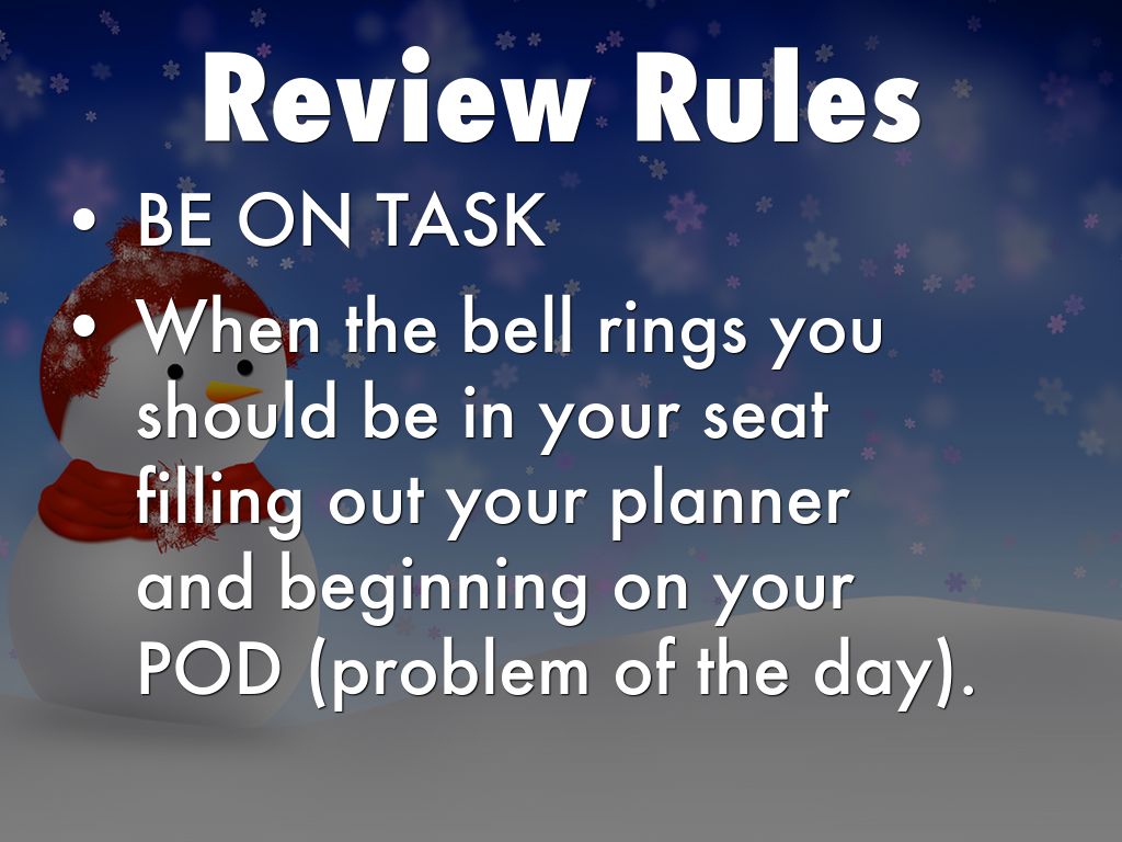 When the bell rings you should be in your seat filling out your planner and beginning on your POD (problem of the day).