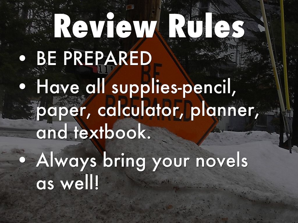 Have all supplies-pencil, paper, calculator, planner, and textbook.