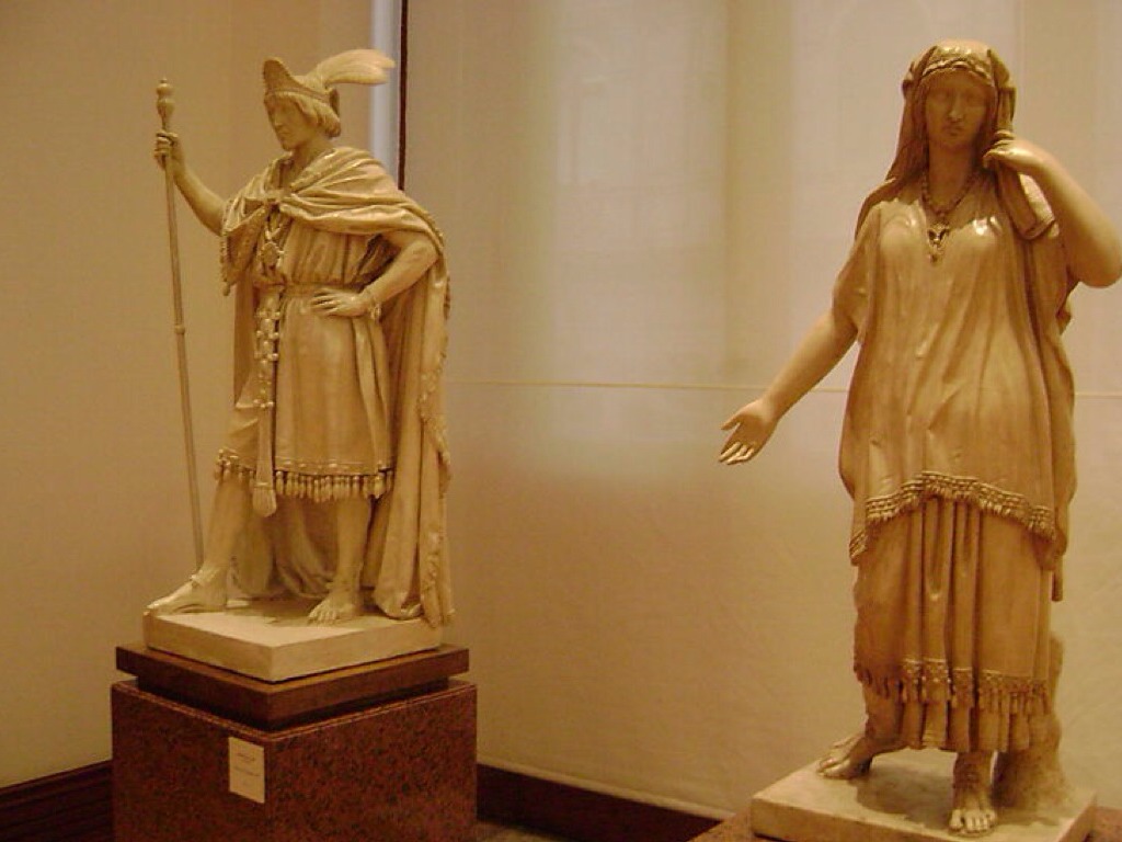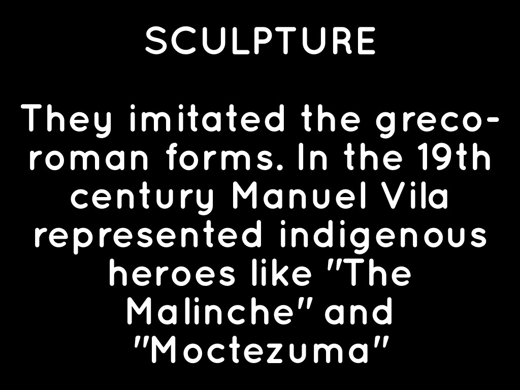 They imitated the greco-roman forms. In the 19th century Manuel Vila represented indigenous heroes like "The Malinche" and "Moctezuma"