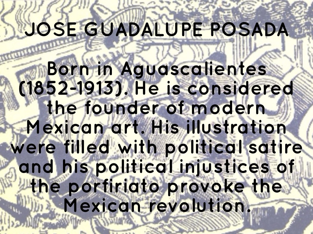 Born in Aguascalientes (1852-1913). He is considered the founder of modern Mexican art. His illustration were filled with political satire and his political injustices of the porfiriato provoke the Mexican revolution.