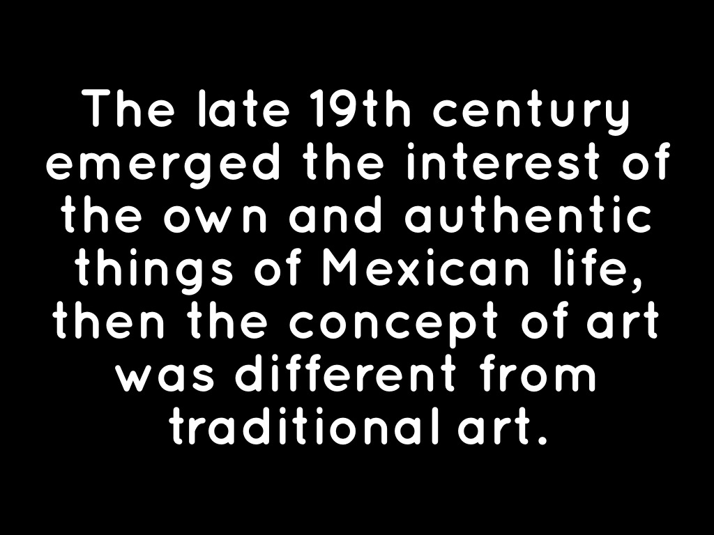 The late 19th century emerged the interest of the own and authentic things of Mexican life, then the concept of art was different from traditional art.
