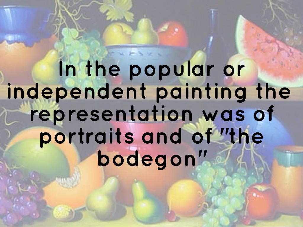 In the popular or independent painting the representation was of portraits and of "the bodegon"