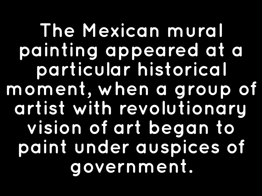 The Mexican mural painting appeared at a particular historical moment, when a group of artist with revolutionary vision of art began to paint under auspices of government.
