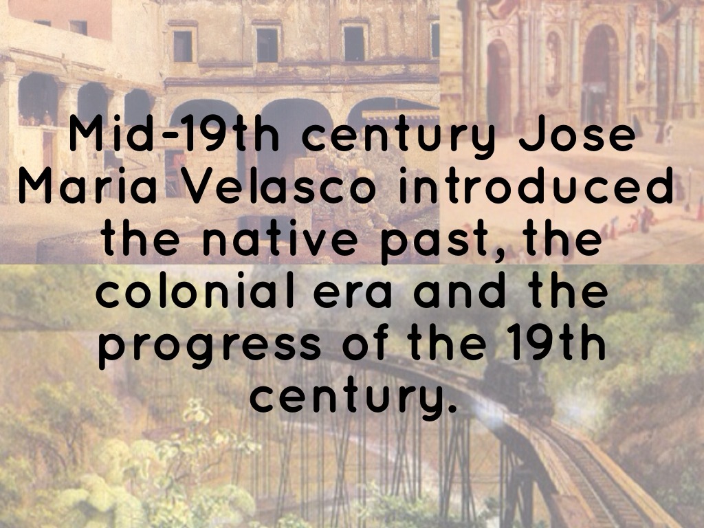 Mid-19th century Jose Maria Velasco introduced the native past, the colonial era and the progress of the 19th century.
