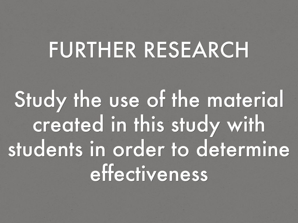 FURTHER RESEARCH