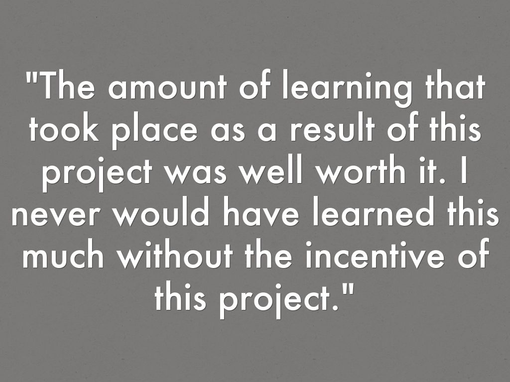 "The amount of learning that took place as a result of this project was well worth it. I never would have learned this much without the incentive of this project."