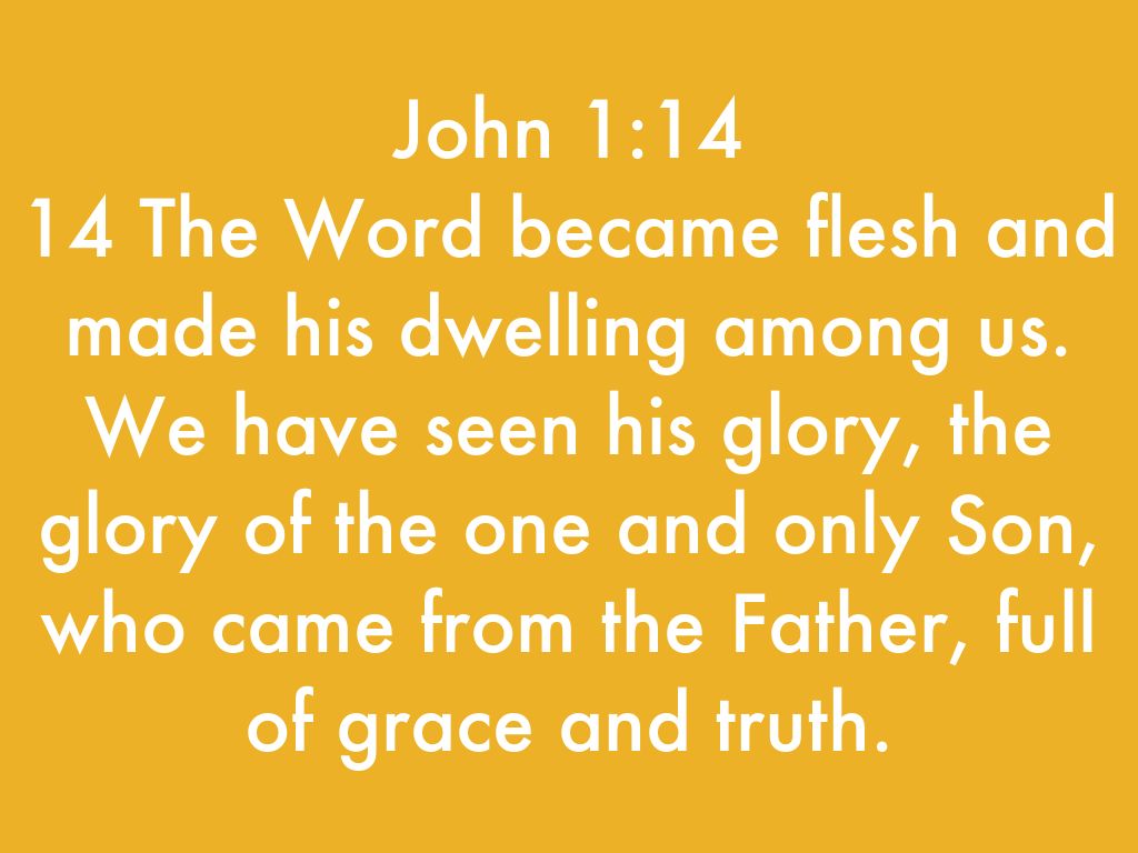 14 The Word became flesh and made his dwelling among us. We have seen his glory, the glory of the one and only Son, who came from the Father, full of grace and truth.