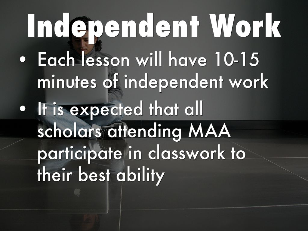 • It is expected that all scholars attending MAA participate in classwork to their best ability