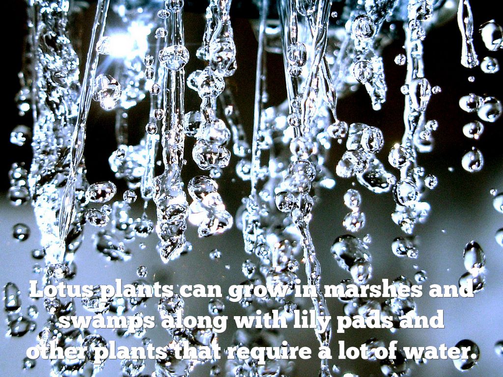 Lotus plants can grow in marshes and swamps along with lily pads and other plants that require a lot of water.