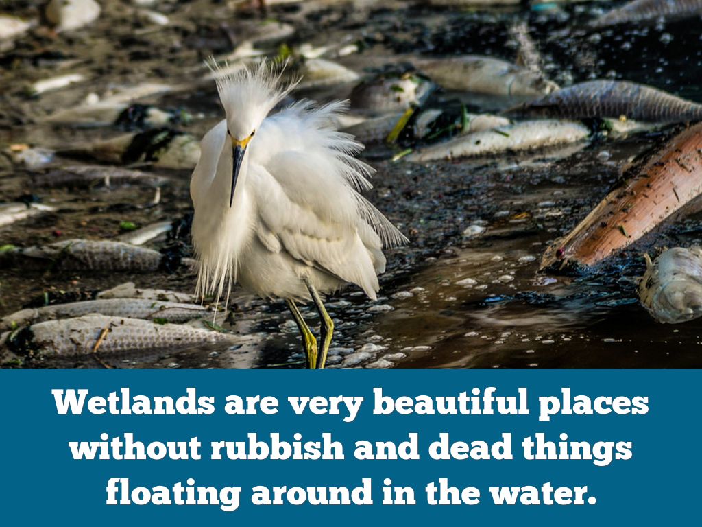 Wetlands are very beautiful places without rubbish and dead things floating around in the water.