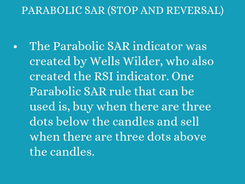 - The Parabolic SAR indicator was created by Wells Wilder, who also created the RSI indicator. One