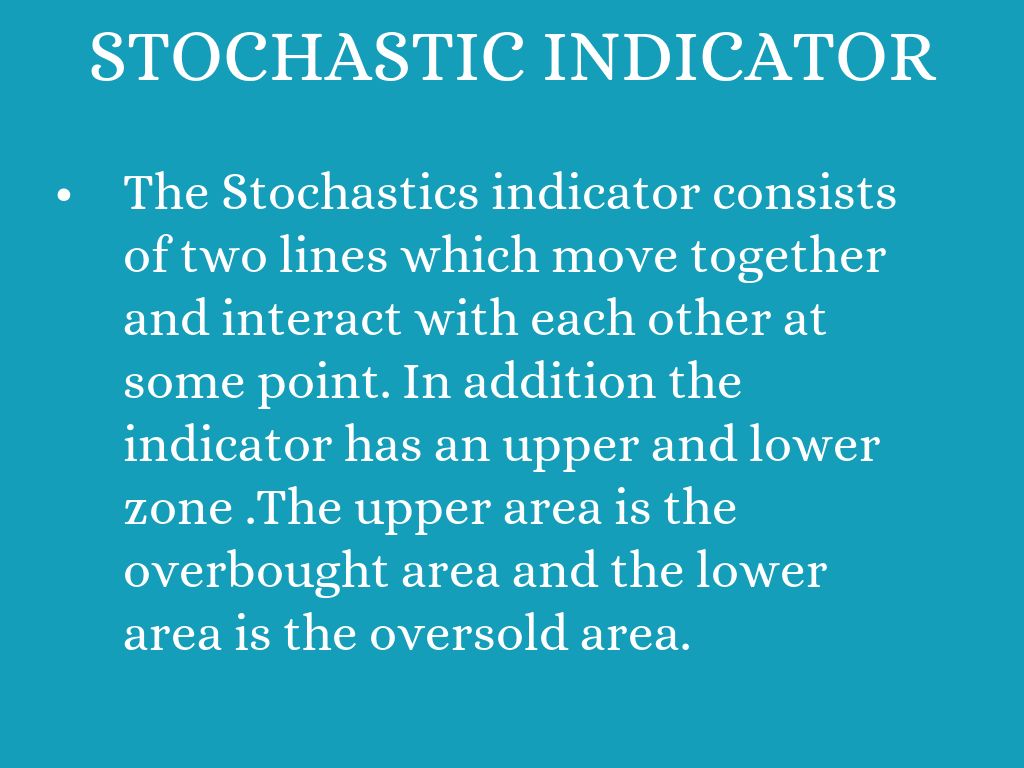- The Stochastics indicator consists of two lines which move together and interact with each other at