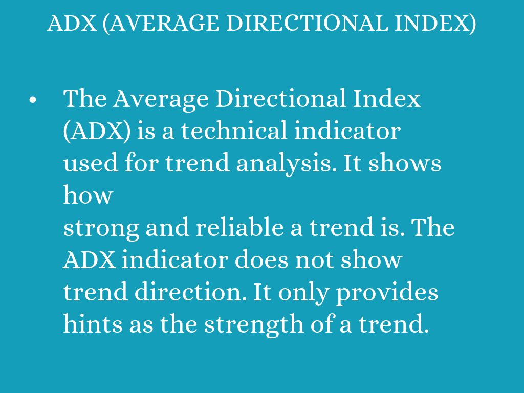 - The Average Directional Index (ADX) is a technical indicator used for trend analysis. It shows how