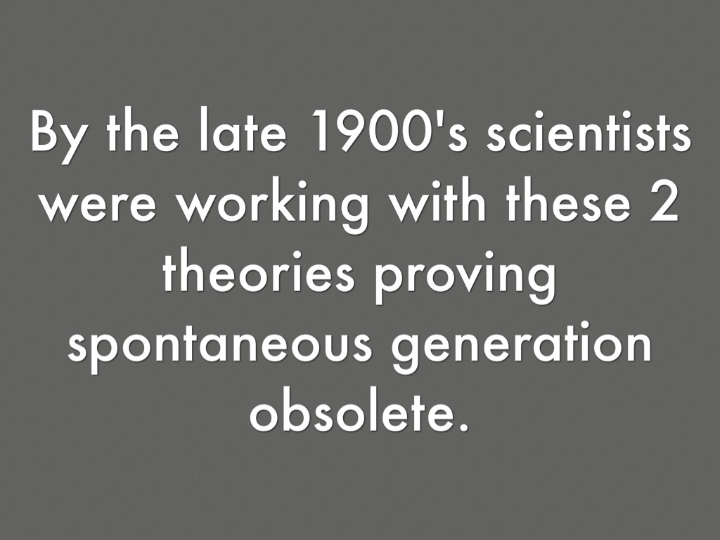 By the late 1900's scientists were working with these 2 theories proving spontaneous generation obsolete.