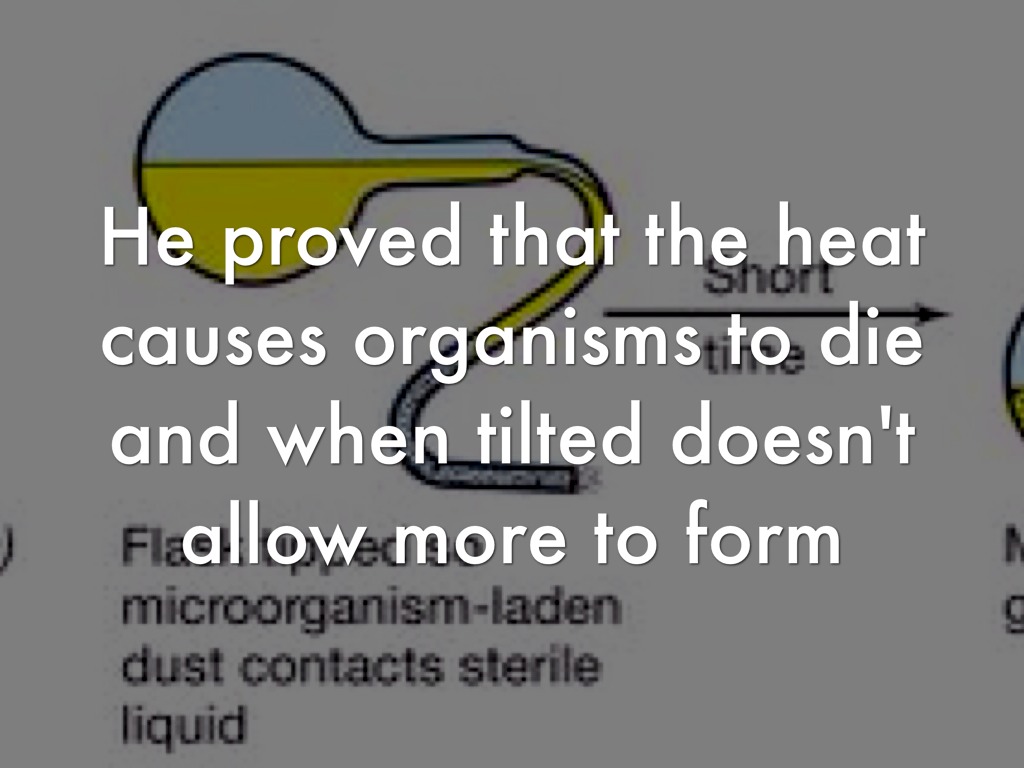 He proved that the heat causes organisms to die and when tilted doesn't allow more to form