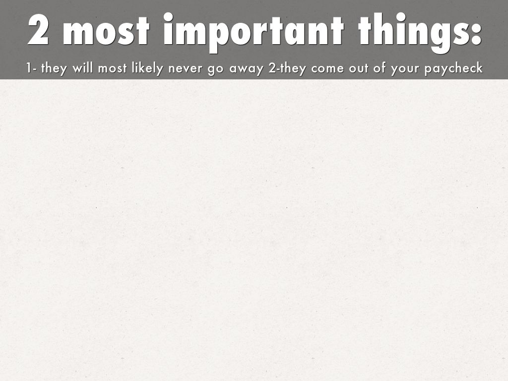 1- THEY WILL MOST LIKELY NEVER GO AWAY 2-THEY COME OUT OF YOUR PAYCHECK