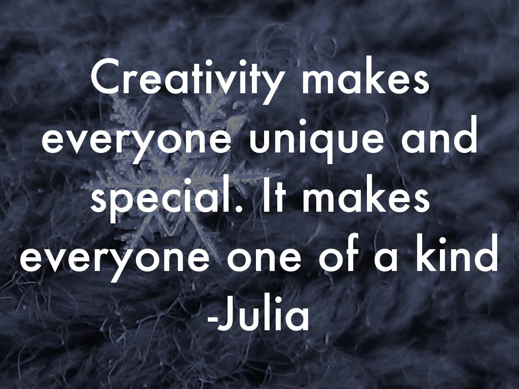 Creativity makes everyone unique and special. It makes everyone one of a kind