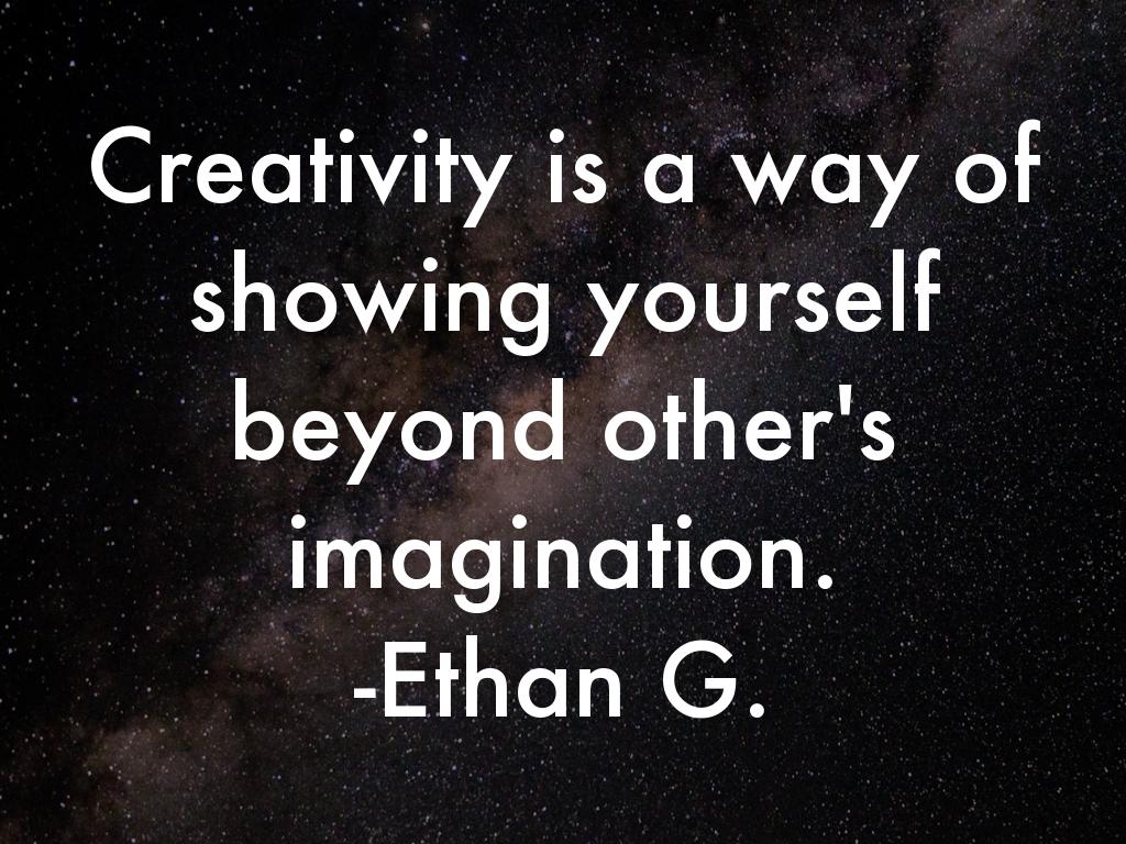Creativity is when you cleverly brainstorm stuff in your mind and put it on a piece of paper. As Albert Einstein once said, "Imagination is everything, it's the preview of life's coming attractions"