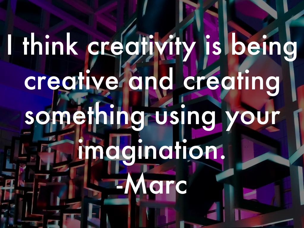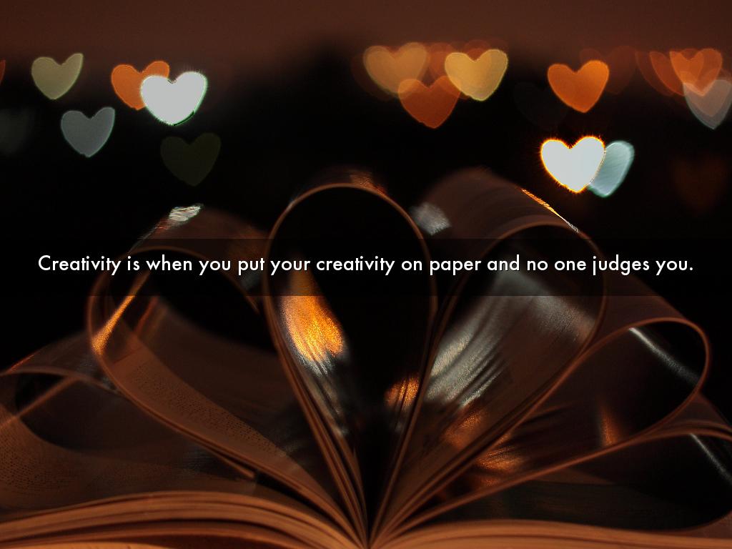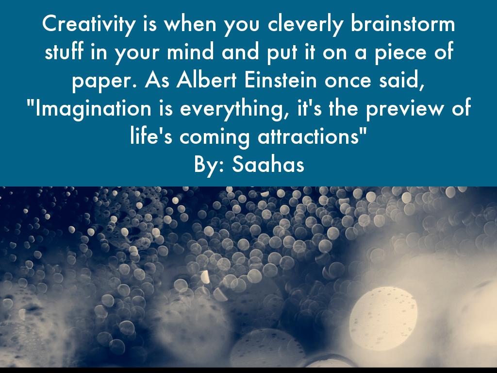 Creativity is when you cleverly brainstorm stuff in your mind and put it on a piece of paper. As Albert Einstein once said, "Imagination is everything, it's the preview of life's coming attractions"