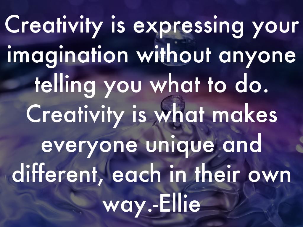 Creativity is expressing your imagination without anyone telling you what to do. Creativity is what makes everyone unique and different, each in their own way.-Ellie