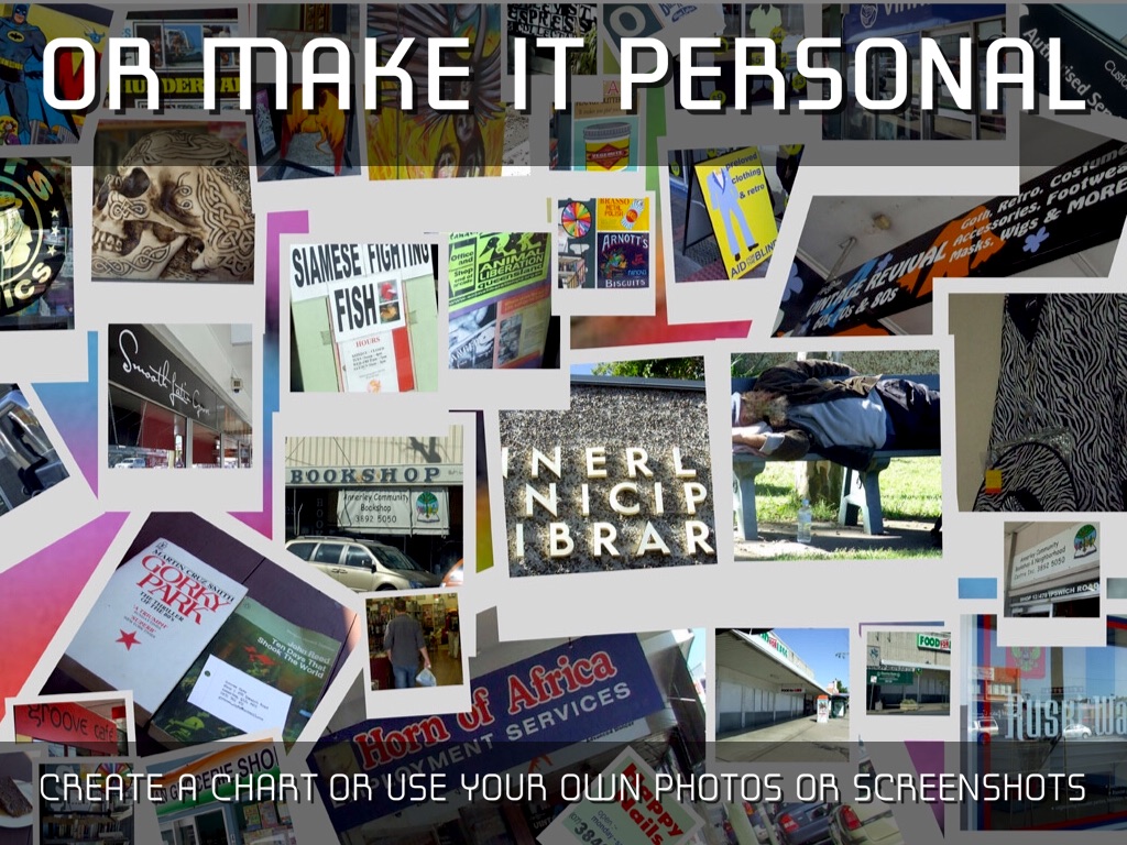 CREATE A CHART OR USE YOUR OWN PHOTOS OR SCREENSHOTS