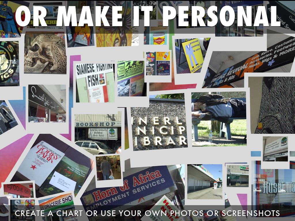 CREATE A CHART OR USE YOUR OWN PHOTOS OR SCREENSHOTS