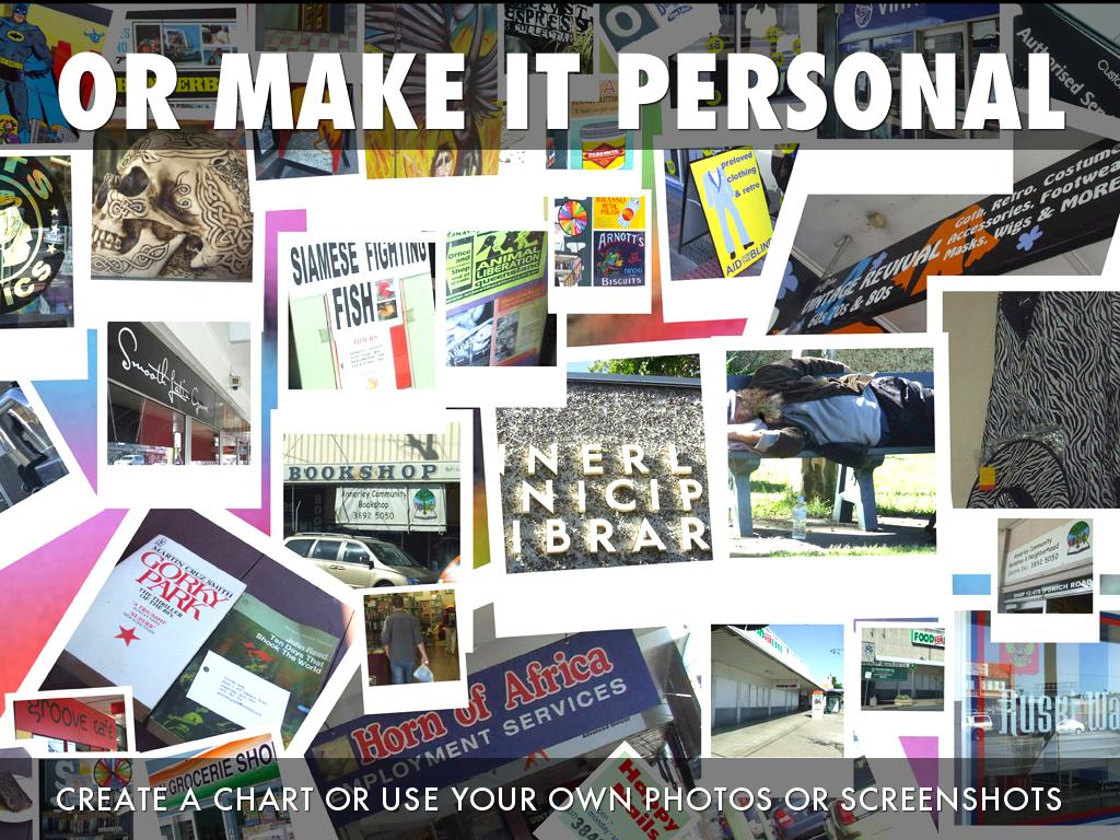 CREATE A CHART OR USE YOUR OWN PHOTOS OR SCREENSHOTS