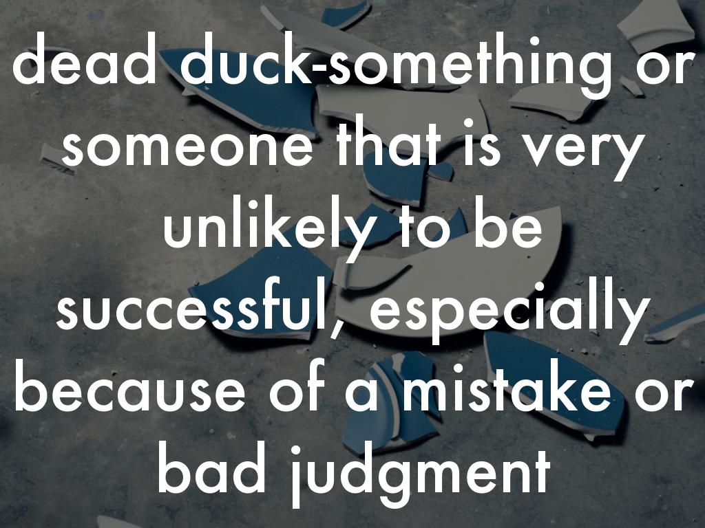 dead duck-something or someone that is very unlikely to be successful, especially because of a mistake or bad judgment