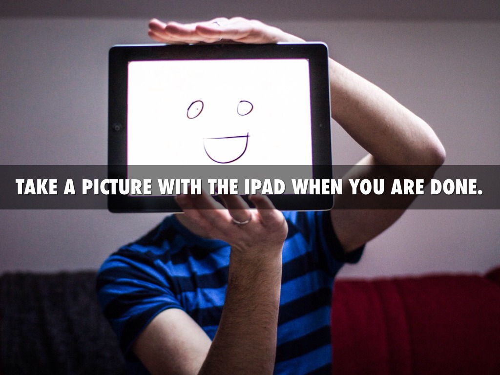 TAKE A PICTURE WITH THE IPAD WHEN YOU ARE DONE.