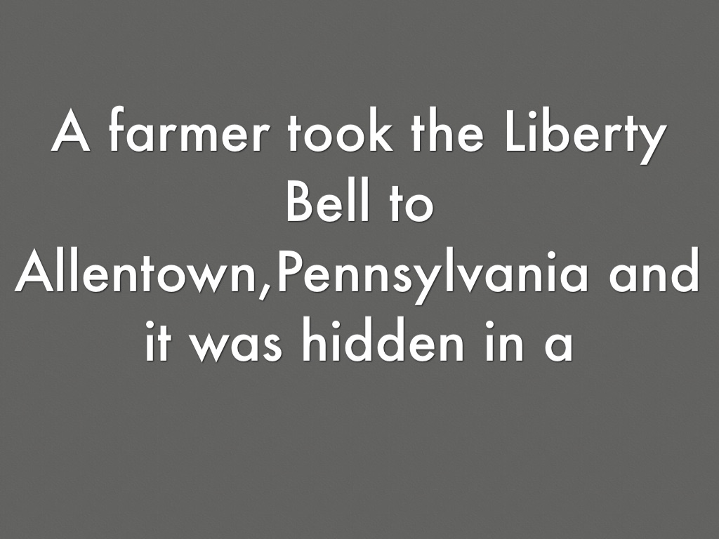 A farmer took the Liberty Bell to Allentown,Pennsylvania and it was hidden in a