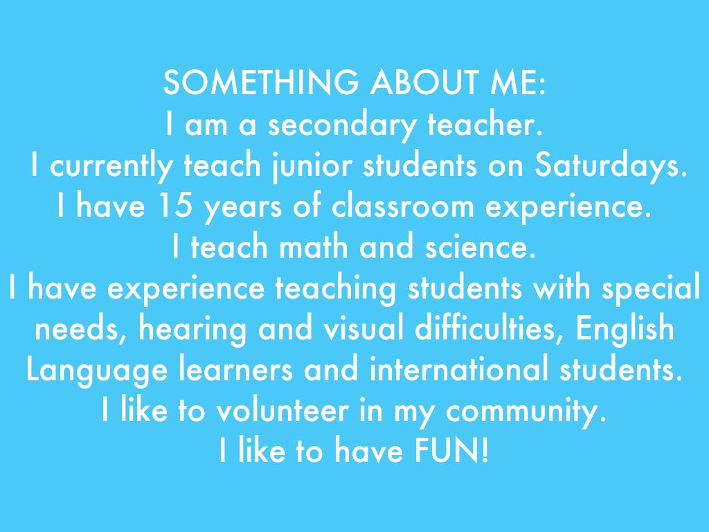 I have experience teaching students with special needs, hearing and visual difficulties, English Language learners and international students.
