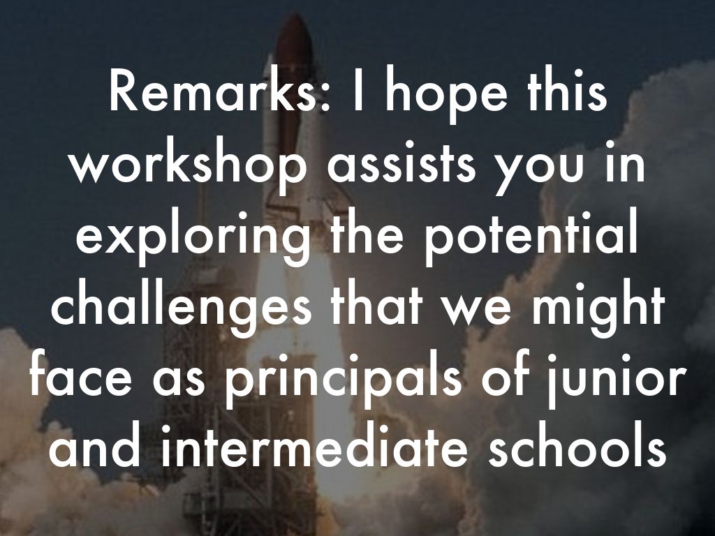 Remarks: I hope this workshop assists you in exploring the potential challenges that we might face as principals of junior and intermediate schools
