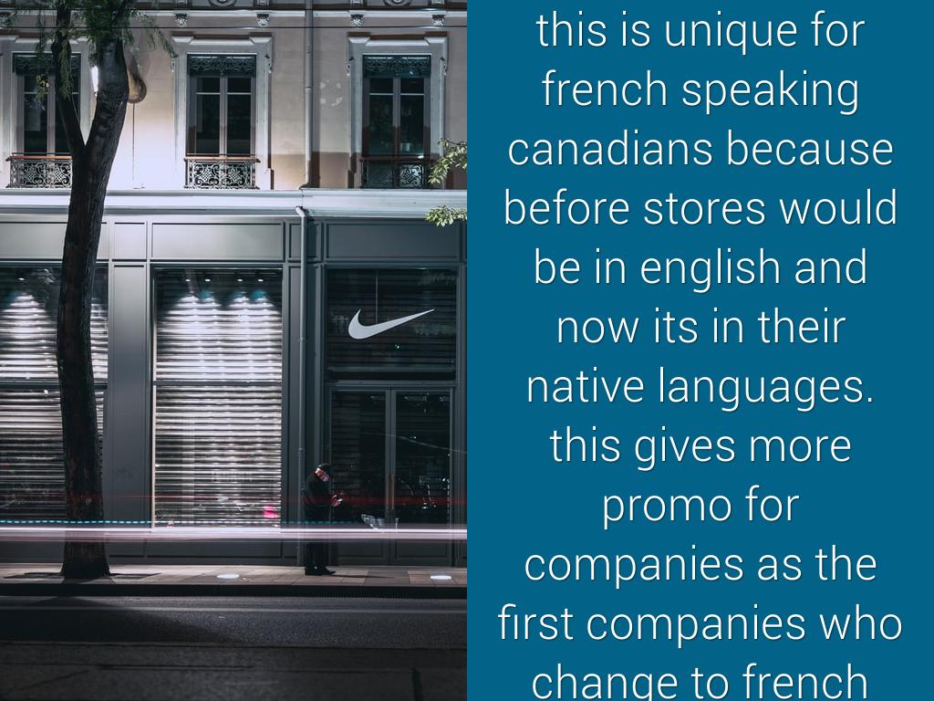 this is unique for french speaking canadians because before stores would be in english and now its in their native languages. this gives more promo for companies as the first companies who change to french names will be recognized as being french friendly. the rest of canada wont have a problem as majority of the stores are recognizabe by logo anyways so if they go to quebec they wont get confused.
