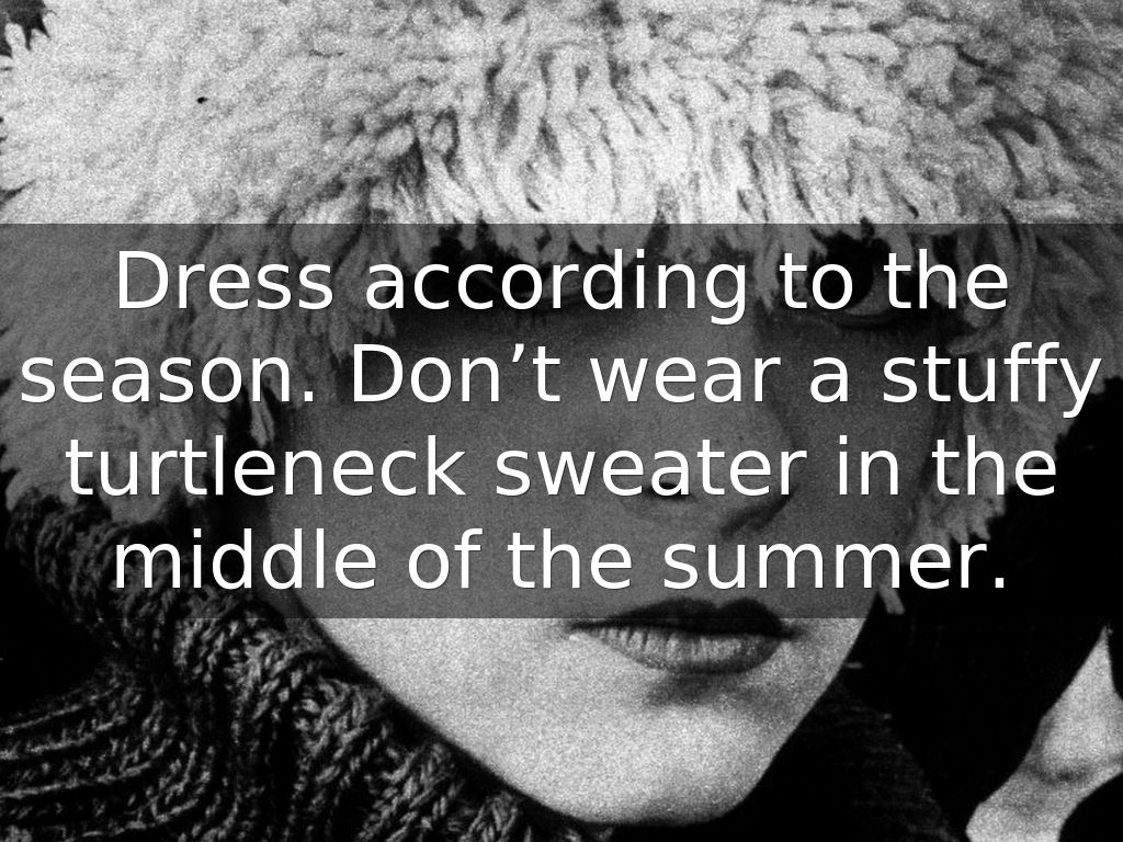 Make sure your clothing fits properly. If your pants or sleeves are too long or something is too loose or too tight you’ll look and probably feel awkward.