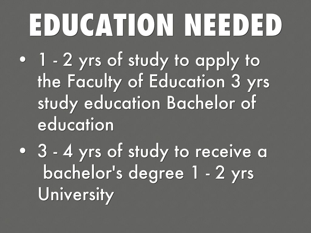 1 - 2 yrs of study to apply to the Faculty of Education 3 yrs study education Bachelor of education