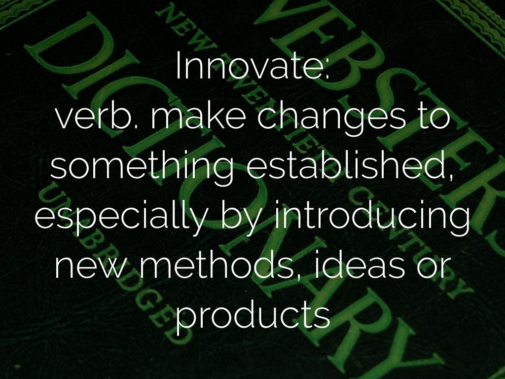 verb. make changes to something established, especially by introducing new methods, ideas or products